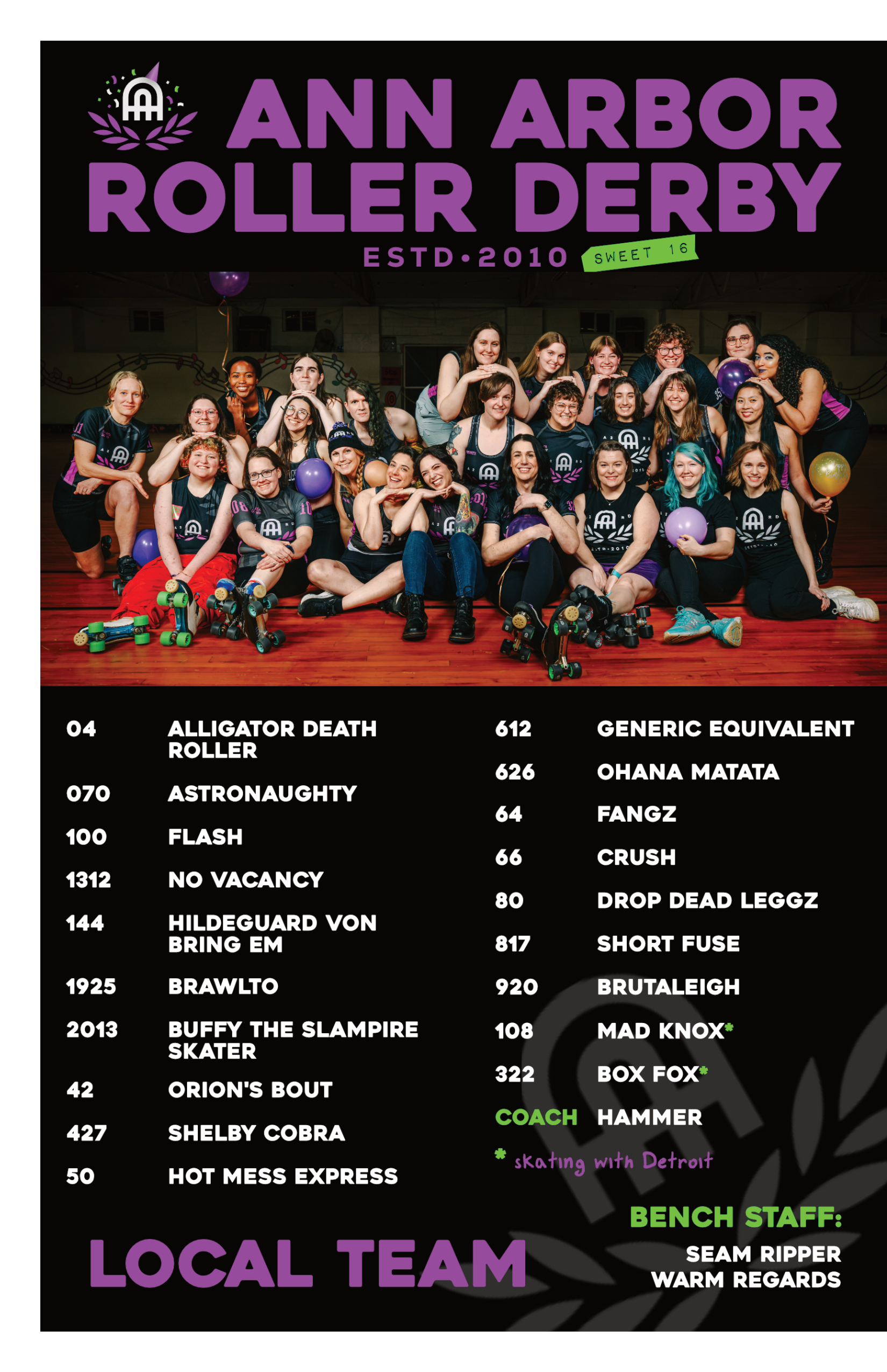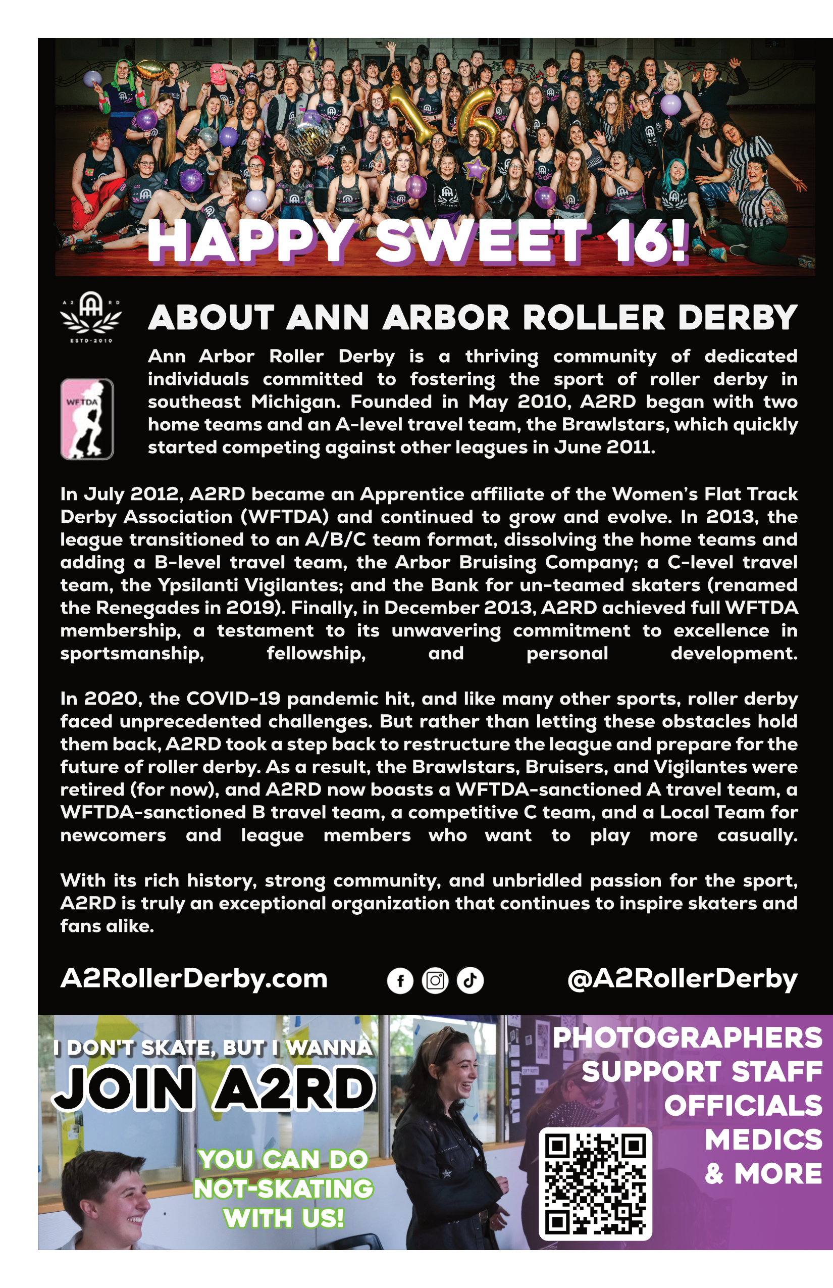 May 2, 2026 Program vs Detroit Apr 28 Written By Nebula A2RD Web 2026 Season Home Game #1 Download the Digital Program PDF Download the Digital Program PDF Roller Derby 101 Roller Derby 101 Click to enlarge pictures View fullsize View fullsize View fullsize View fullsize View fullsize View fullsize View fullsize View fullsize Nebula A2RD Web